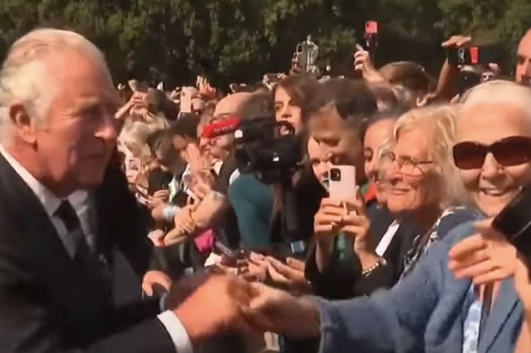 Taking the crowd, including Maria, by surprise the King and Camilla worked their way along the line, shaking hands with Maria who said “God bless you” as she held the new monarch’s hand.